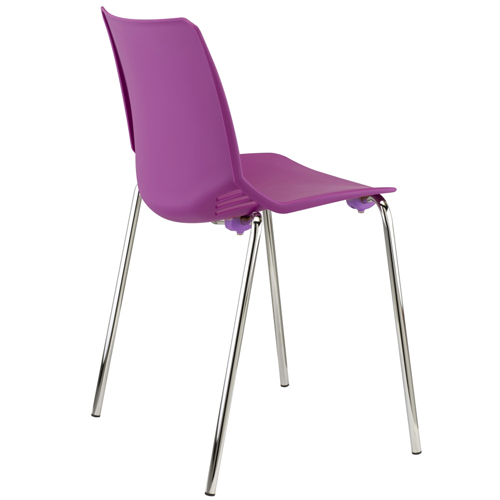 Esta silla está realizada en polipropileno. Disponible en color azul, blanco, gris y magenta, con chasis de 4 patas en acero cromado.