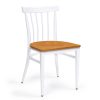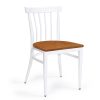 El asiento de madera está disponible en dos opciones: madera maciza o laminada, proporcionando tanto confort como estilo.